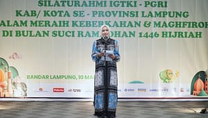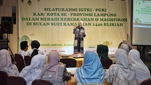 Bunda PAUD Provinsi Lampung, Purnama Wulan Sari Mirza menghadiri Silaturahmi Ikatan Guru Taman Kanak-Kanak Indonesia (IGTKI) – Persatuan Guru Republik Indonesia (PGRI) Kabupaten Kota se-Provinsi Lampung bertempat di Grand Anugerah Hotel, Minggu (09/03/2025).