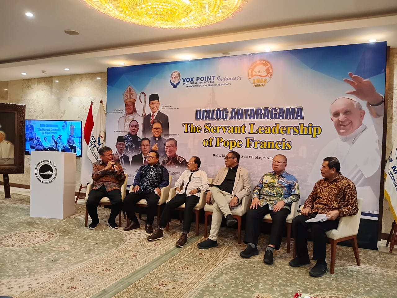 Vox Point Indonesia menggelar Dialog Antaragama bertema “The Servant Leadership of Pope Francis” di Masjid Istiqlal, Rabu (28/5). Menteri Agama Republik Indonesia, Prof. Dr. KH Nasaruddin Umar, MA, hadir mendoakan forum dialog antar agama ini sekaligus menjadi keynot speaker.