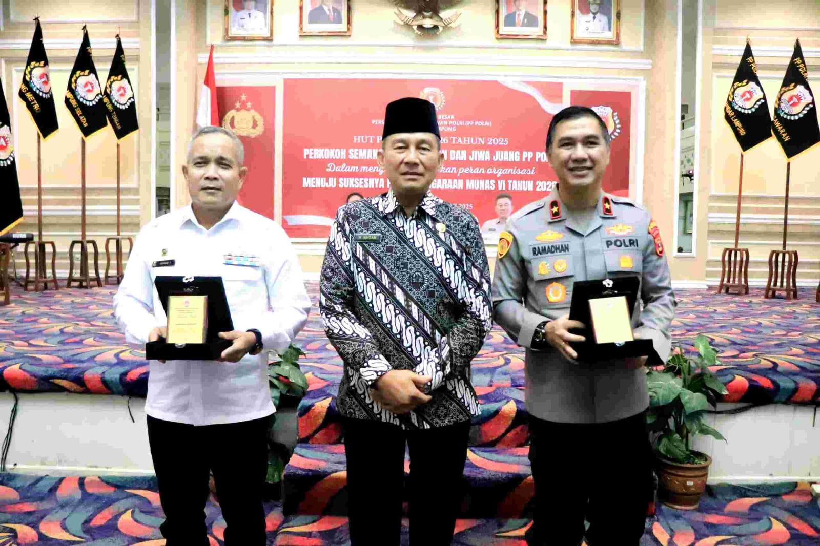 Dalam kesempatan tersebut juga diberikan Penghargaan oleh Ketua PP Polri Daerah Lampung Brigjend Pol (Purn) Drs. M. Ikhsan, M.H kepada Gubernur Lampung Rahmat Mirzani Djausal yang diwakili oleh Staf Ahli Gubernur Bidang Pemerintahan, Hukum, dan Politik Provinsi Lampung, Achmad Saefulloh.