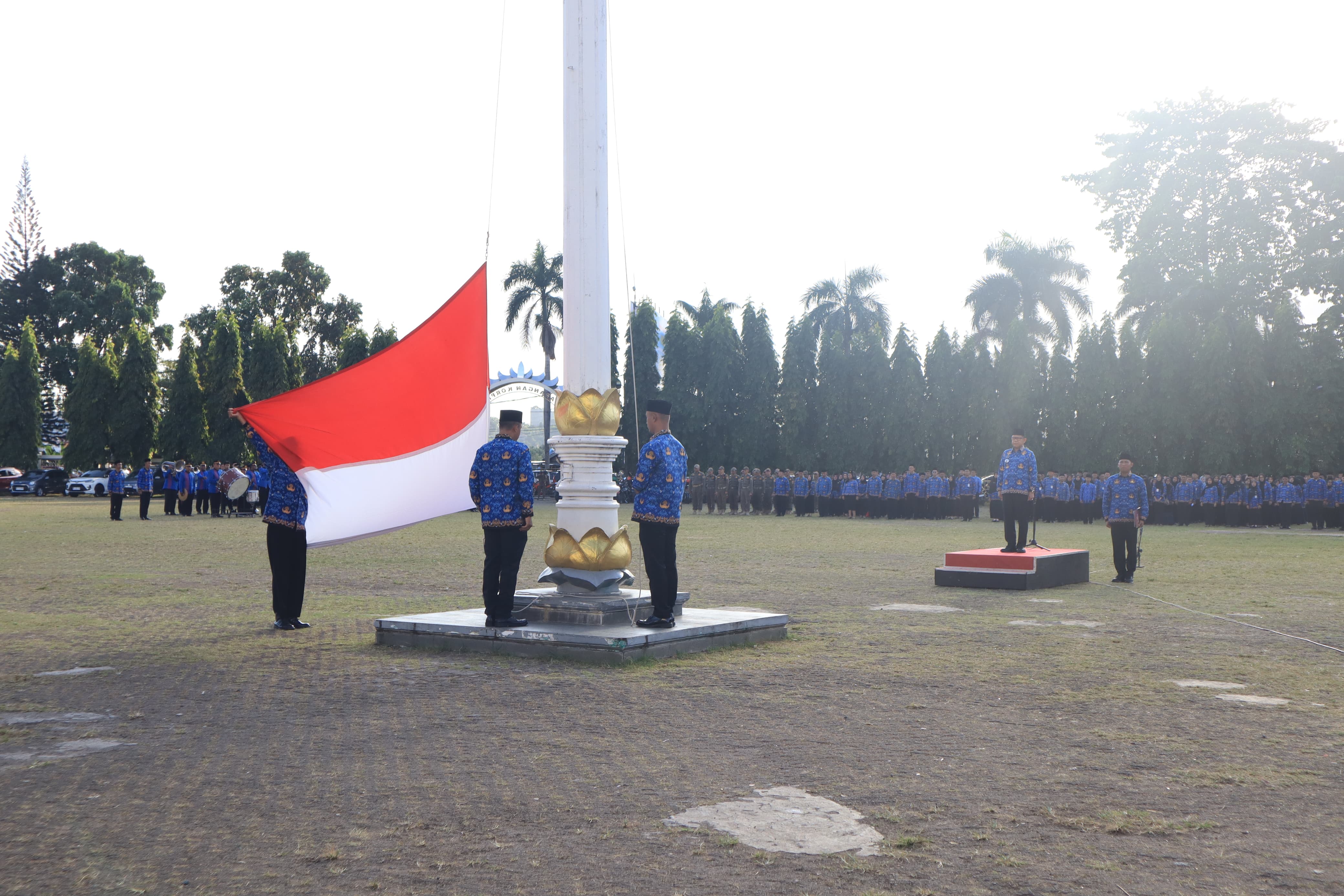 Gubernur Lampung yang diwakili oleh Asisten Administrasi Umum Sekretariat Daerah Provinsi Lampung, Sulpakar menjadi lnspektur Upacara (Irup) pada Upacara Bulanan dilingkungan Pemerintah Provinsi Lampung bertempat di Lapangan Korpri Komplek Kantor Gubernur, Kamis (17/07/2025).