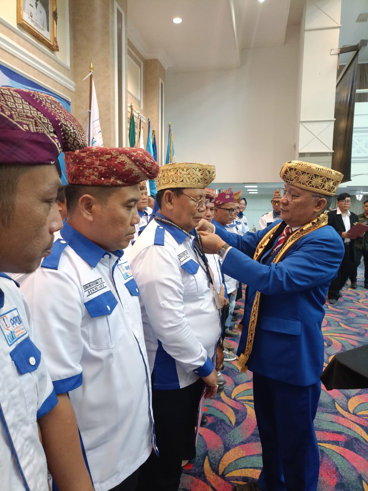 Dilanjutkan penyematan pin dan penyerahan bendera PPWI, dari Ketua Umum PPWI ke Pengurus DPD dan DPC PPWI se- Provinsi Lampung, sebagai simbol pemberian tanggung jawab organisasi untuk seluruh pengurus PPWI Provinsi Lampung.