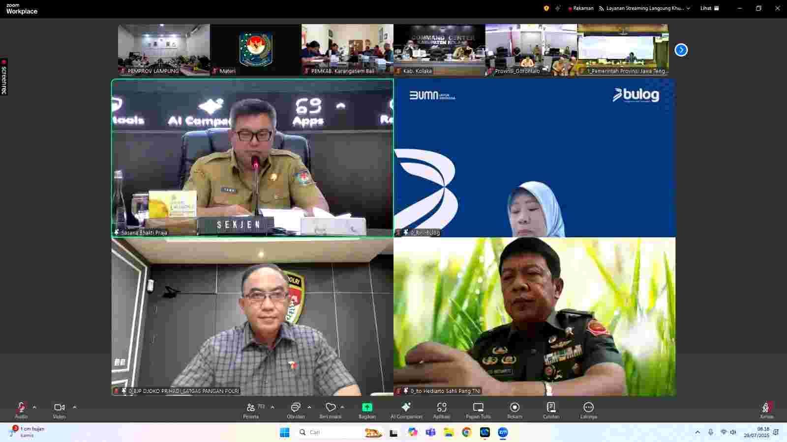 Pemerintah Provinsi Lampung yang diwakili Staf Ahli Gubernur Bidang Pemerintahan, Hukum, dan Politik, Achmad Saefulloh mengikuti Rapat Koordinasi Pengendalian Inflasi Daerah yang dirangkai dengan pembahasan Evaluasi Dukungan Pemerintah Daerah dalam Program 3 Juta Rumah secara virtual bertempat di Ruang Command Center Lt. II Dinas Kominfotik Provinsi Lampung, Selasa (29/07/2025).