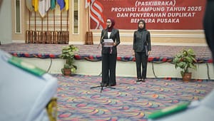 “Atas nama pribadi, atas nama pemerintah provinsi Lampung, masyarakat Lampung menyampaikan turut berbangga atas dikukuhkannya adik-adik semua, tentu ini menjadi suatu kehormatan untuk mengibarkan Sang Saka Merah Putih pada upacara bendera memperingati kemerdekaan kita yang ke 80 tahun 2025,” ucapnya.
