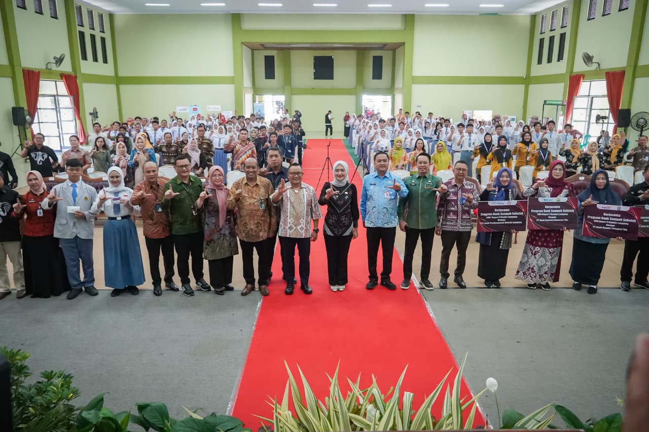 Wakil Gubernur Jihan Nurlela melaunching Program Bank Sampah Sekolah yang digelar di Gedung Serba Guna (GSG) SMAN 2 Bandar Lampung, Kamis (21/8/2025).