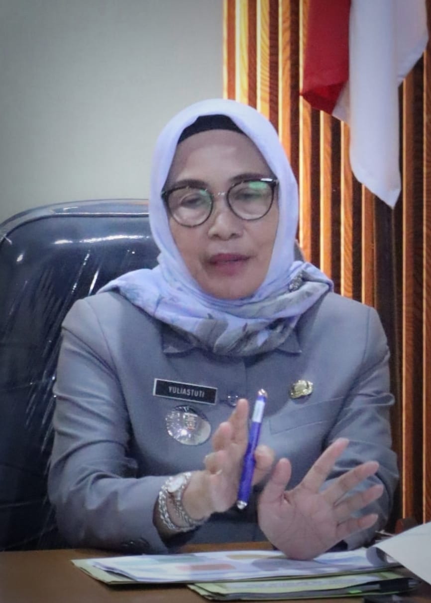 Kepala Dinas Perkebunan Provinsi Lampung, Ir. Yuliastuti, M.T.A, memaparkan berbagai langkah strategis yang dijalankan sepanjang tahun 2025, termasuk penerapan sistem budidaya pagar pada tanaman kopi robusta.