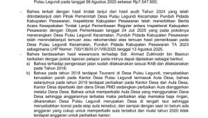 DIDUGA DI SELEWENGKAN OLEH OKNUM KEPADA DESA ACHMAD ZULKHOIDIR, SEHINGGA TIDAK MASUK AKAL SEHAT, KARENA DPW LEMBAGA PEDULI HUKUM LAMPUNG MELAKSANAKAN INVESTIGASI SELAMA TIGA HARI DI DESA PULAU LEGUNDI, JADI APA YG KAMI SERAP DAN KAMI LIHAT ADALAH FAKTA, BUKAN ASAL BUAT, DAN KAMI DI UNDANG OLEH WARGA MASYARAKAT DESA PULAU LEGUNDI.