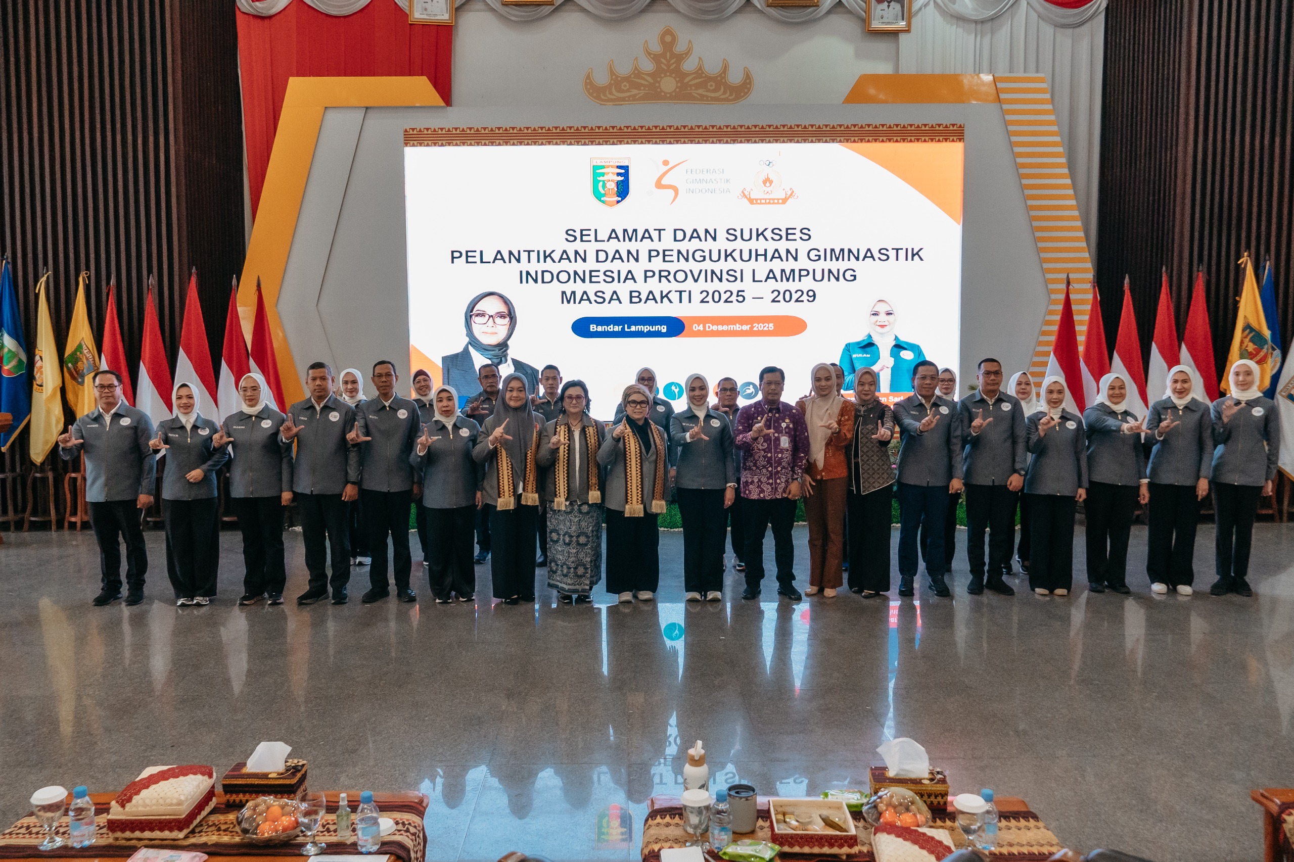 Pengurus Gimnastik Indonesia Provinsi Lampung masa bakti 2025-2029 resmi dilantik dan dikukuhkan di Mahan Agung, Kamis (4/12/2025). Kepengurusan baru di bawah pimpinan Purnama Wulan Sari Mirza ini menargetkan peningkatan prestasi atlet senam Lampung dari level nasional hingga ke kancah internasional.