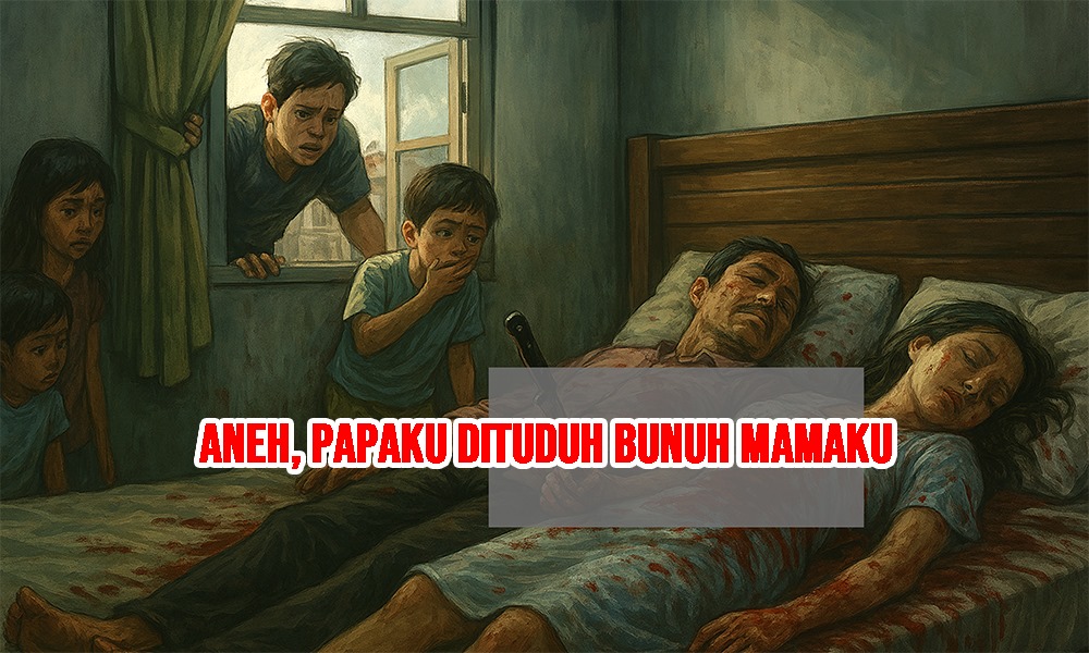 Pemandangan di depan mata sungguh mengerikan. Papa dan mama terkapar berdampingan, berlumuran darah. Sebilah pisau menancap di tubuh papa, sementara tangan mama masih menggenggam pisau itu. Bagi pikiranku yang masih kanak-kanak, posisi itu jelas janggal. Bagaimana mungkin dikatakan mereka berkelahi, sementara tubuh mereka terbaring berdampingan seperti orang tidur?