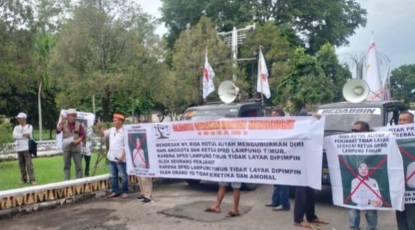 Aksi Damai tersebut dipicu dengan adanya Dugaan perampasan, penguasaan 3 bidang tanah dan bangunan yang diduga dilakukan oleh Rida Rotul Aliyah yang saat ini menjabat sebagai Ketua DPRD Lampung Timur 2024 sampai 2029.