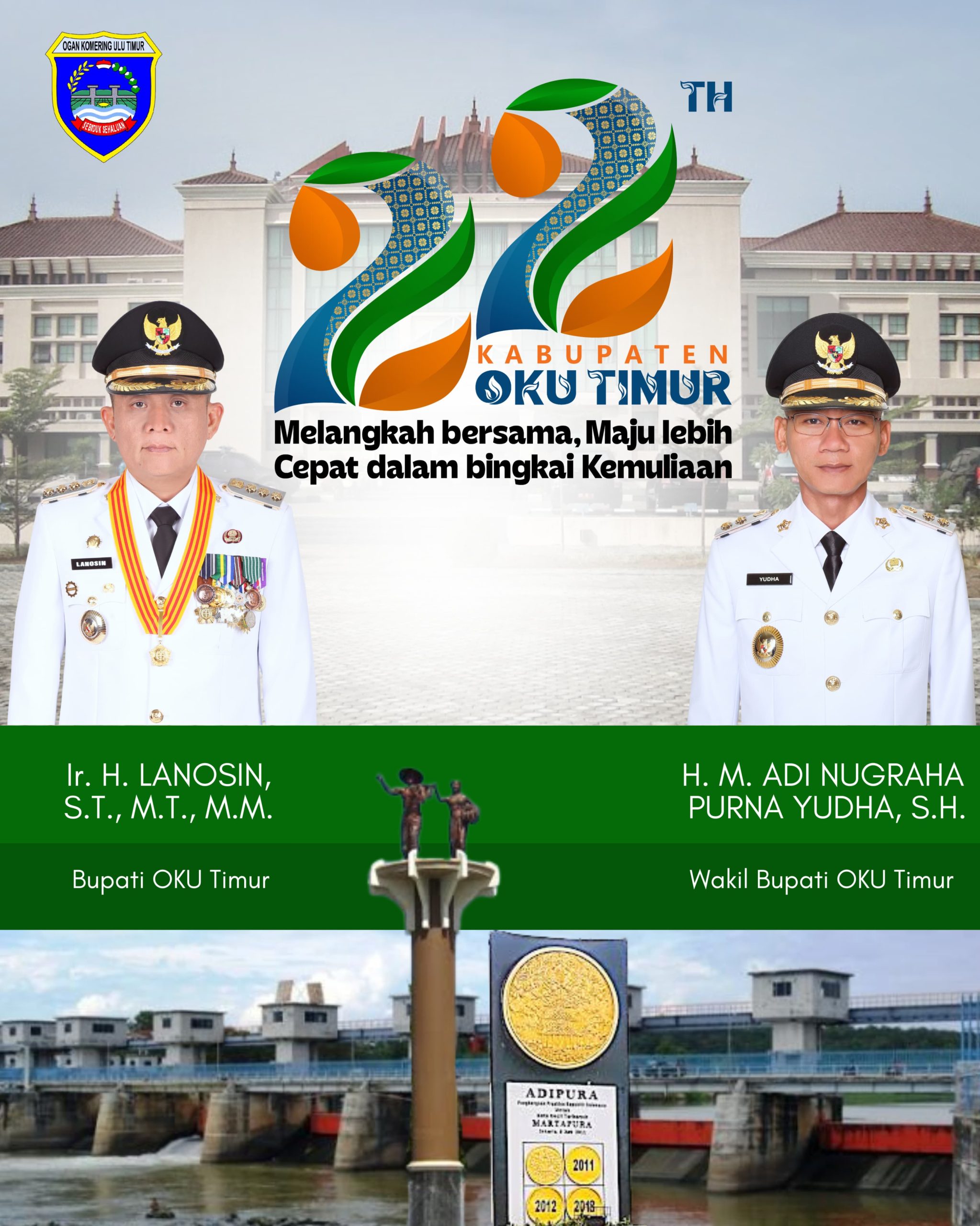 Peringatan HUT ke-22 Kabupaten OKU Timur tahun ini mengusung tema “Melangkah Bersama, Maju Lebih Cepat dalam Bingkai Kemuliaan”, yang mencerminkan semangat kebersamaan dan kolaborasi seluruh elemen daerah dalam mendorong percepatan pembangunan yang berkelanjutan dan bermartabat.