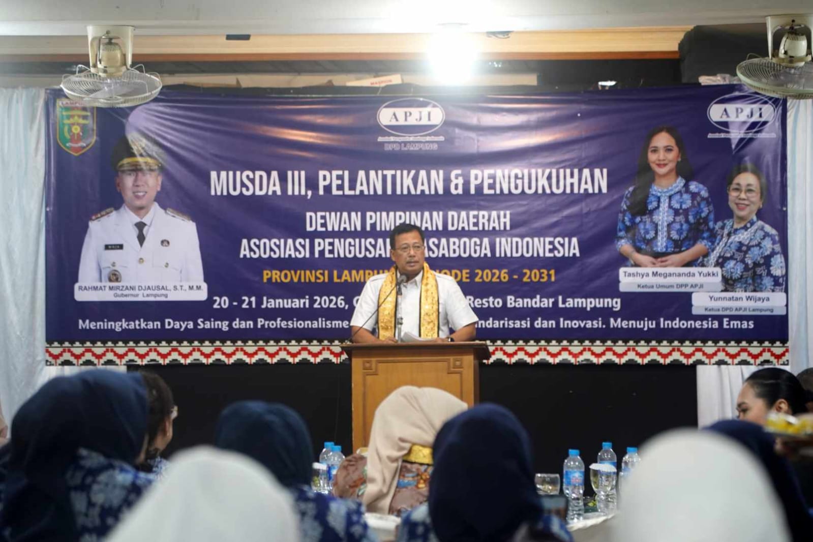 Hal tersebut disampaikan Gubernur Lampung dalam sambutan tertulis yang disampaikan oleh Staf Ahli Gubernur Bidang Ekonomi, Keuangan, dan Pembangunan (Ekubang), Bani Ispriyanto, pada acara Pelantikan dan Pengukuhan Dewan Pimpinan Daerah (DPD) Asosiasi Pengusaha Jasaboga Indonesia (APJI) Provinsi Lampung Periode 2026-2031, di Graha Pattimura Resto, Rabu (21/1/2026).
