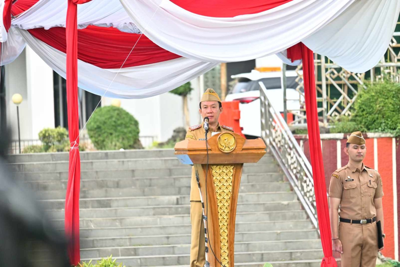 Sekretaris Daerah Provinsi Lampung, Marindo Kurniawan, menjadi Pembina Apel Mingguan di lingkungan Pemerintah Provinsi Lampung yang dirangkai dengan Pencanangan Bulan Keselamatan dan Kesehatan Kerja (K3) Nasional Tahun 2026 tingkat Provinsi Lampung. Kegiatan tersebut dilaksanakan di Lapangan Korpri, Senin pagi (26/1/2026).