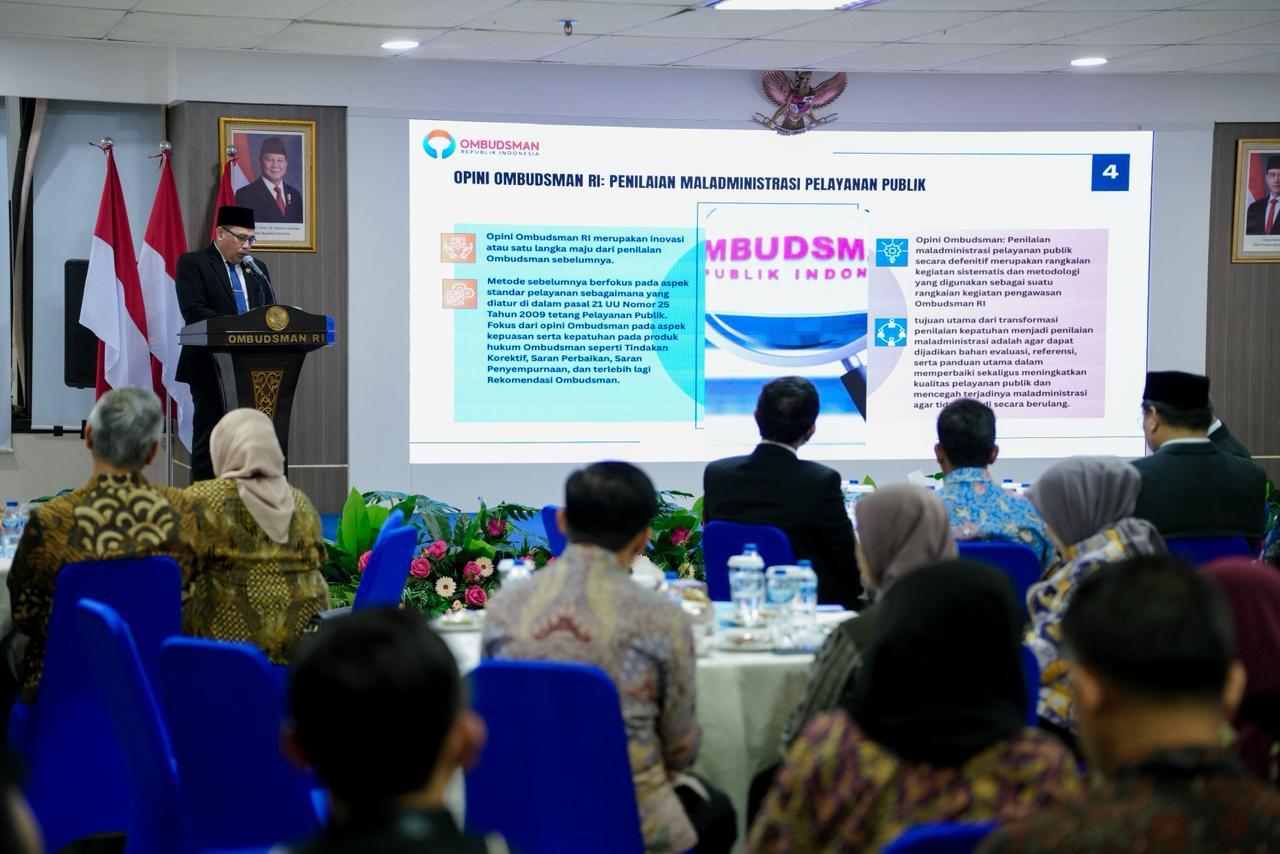 Ketua Ombudsman RI, Mokhammad Najih, dalam sambutannya menjelaskan bahwa mulai tahun 2025, Ombudsman melakukan transformasi signifikan. Jika sebelumnya sejak tahun 2011 penilaian berfokus pada zona kepatuhan, kini berubah menjadi penilaian maladministrasi yang menghasilkan opini pengawasan penyelenggaraan pelayanan publik.