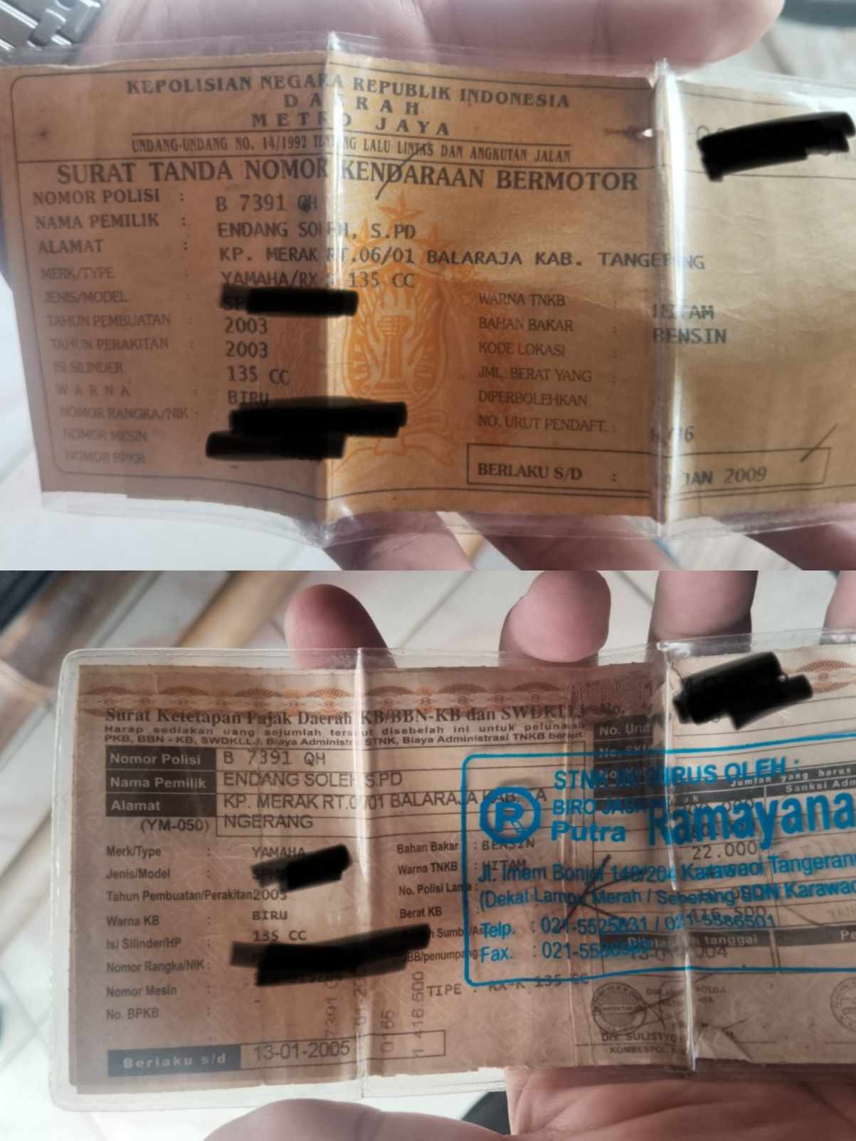 Kehilangan Atas Nama Endang Soleh, S.Pd Dengan Nomor Polisi B 7391 QH