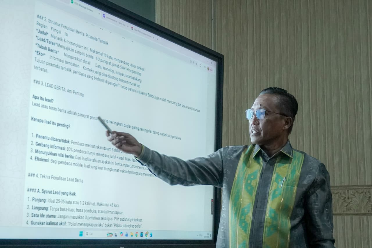 Tak hanya itu, peserta juga dibekali kemampuan jurnalistik melalui materi teknik dasar penulisan berita, struktur 5W+1H, nilai berita, penentuan angle, penyusunan lead, hingga editing dan penyuntingan naskah.