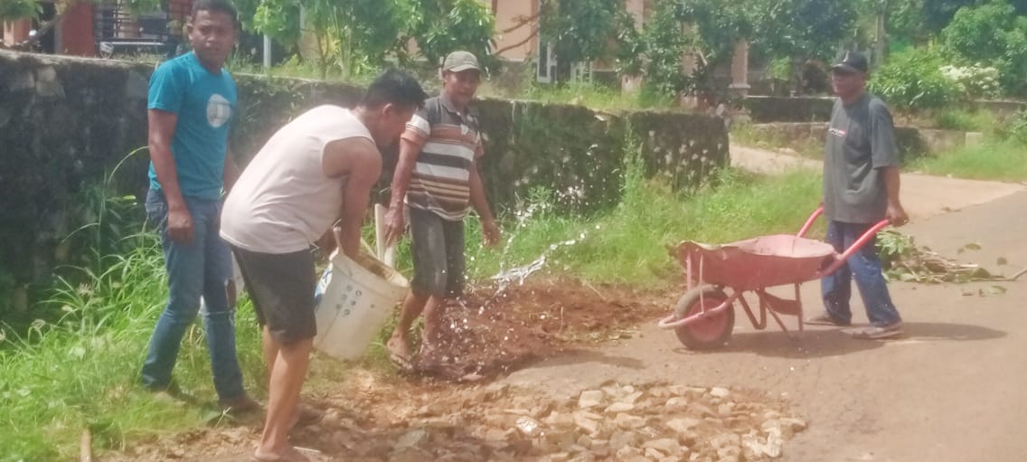 Anggota Marinir yonif 9 Lampung, rela rogoh kocek pribadi untuk perbaikan jalan yang rusak